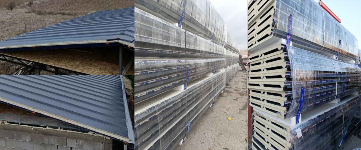 Çeşitli renk ve kalınlıklarda sandviç panellerin yer aldığı bu satış noktasında, antrasit gri çatı panelleri de stoklu olarak bulunur.